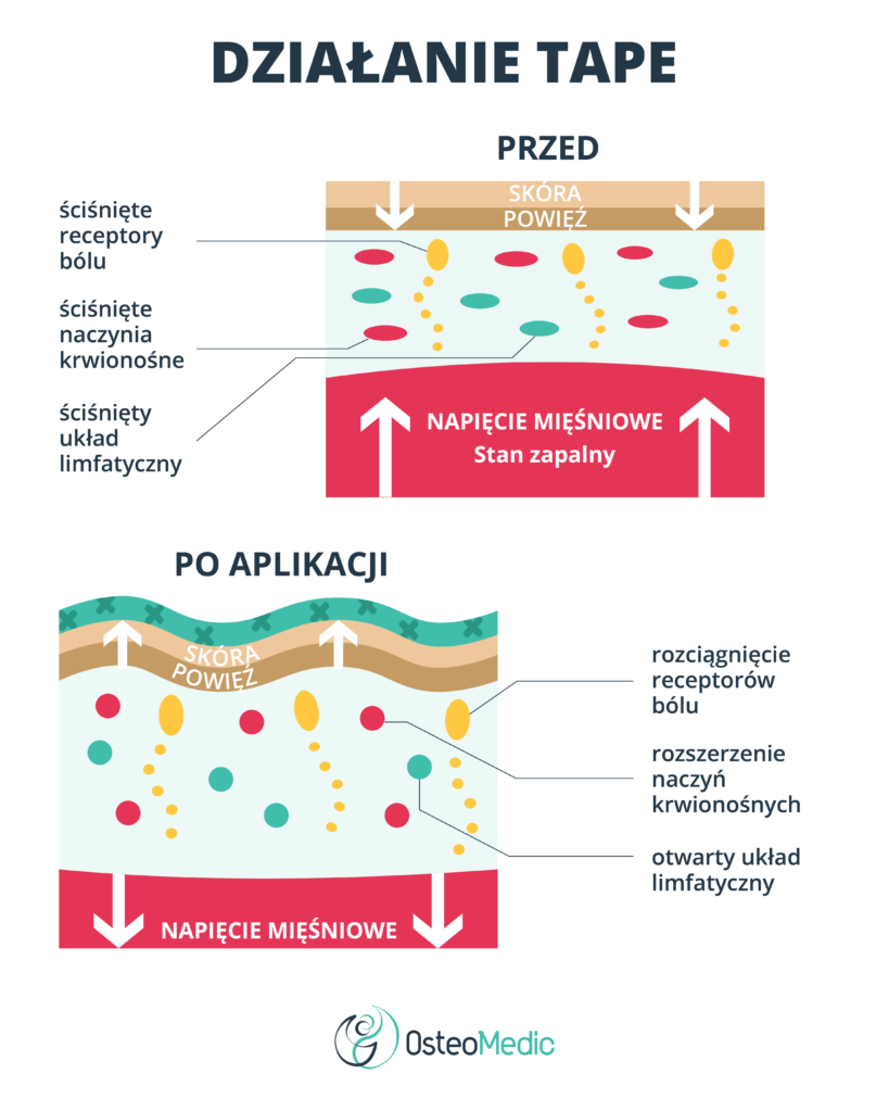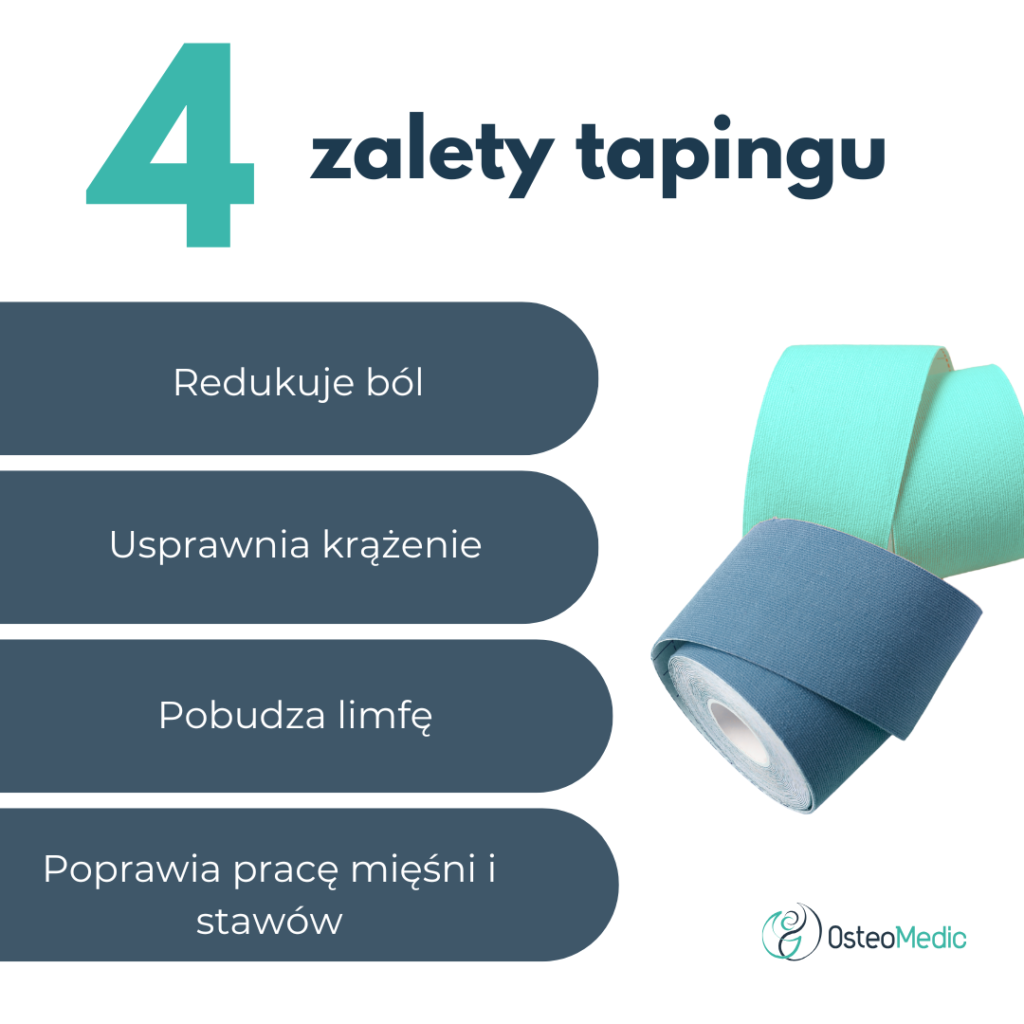To metoda terapeutyczna polegająca na naklejaniu elastycznych taśm (tejpów) na skórę, w celu: